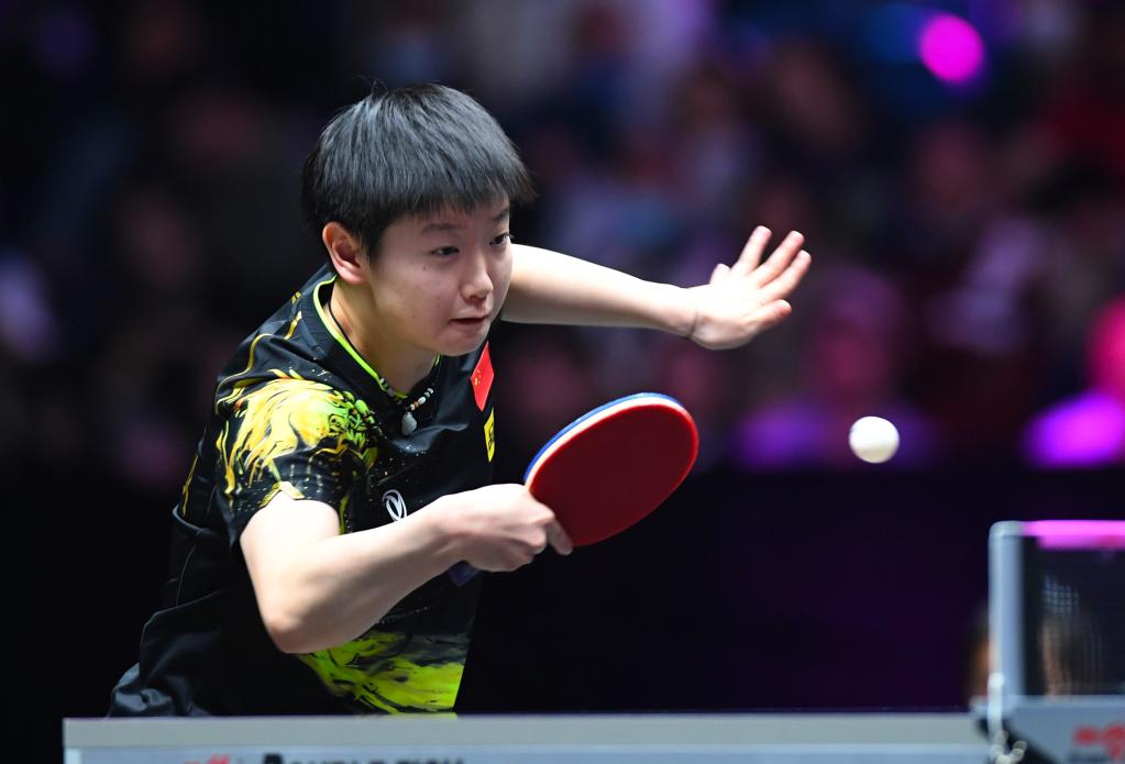 4月10日,孙颖莎在比赛中回球。新华社记者 郝源 摄