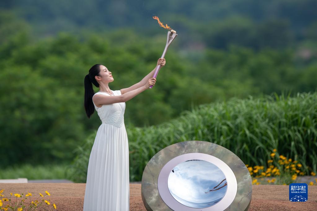 新华社杭州6月15日电(记者夏亮、胡佳丽)15日上午,杭州第19届亚运会火种在杭州良渚古城遗址公园大莫角山成功采集。