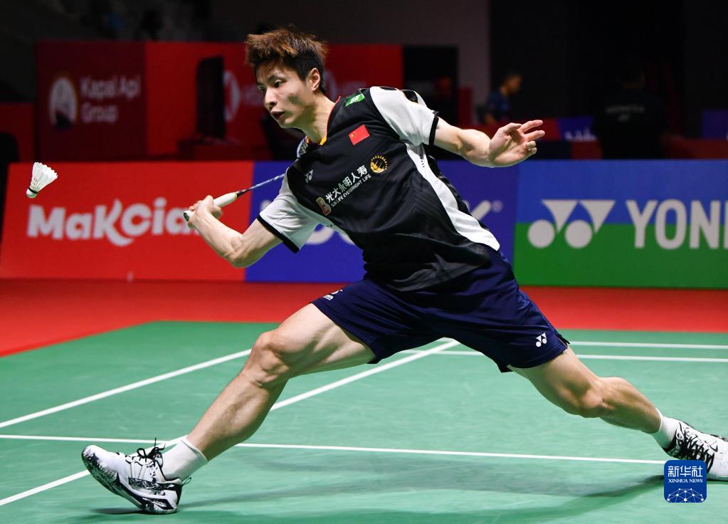 6月13日,石宇奇在雅加达举行的2023年印度尼西亚羽毛球公开赛男单比赛中回球。新华社记者 徐钦 摄