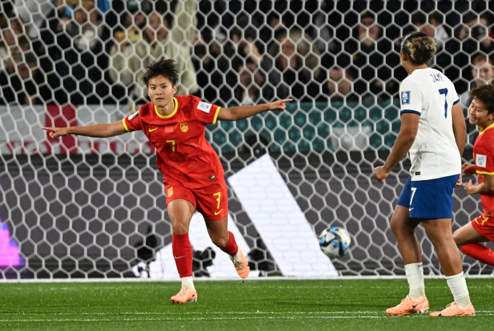 8月1日,中国队球员王霜(左)庆祝罚中点球。当日,在澳大利亚阿德莱德举行的2023年国际足联女足世界杯小组赛D组比赛中,中国队对阵英格兰队。新华社记者 毛思倩 摄
