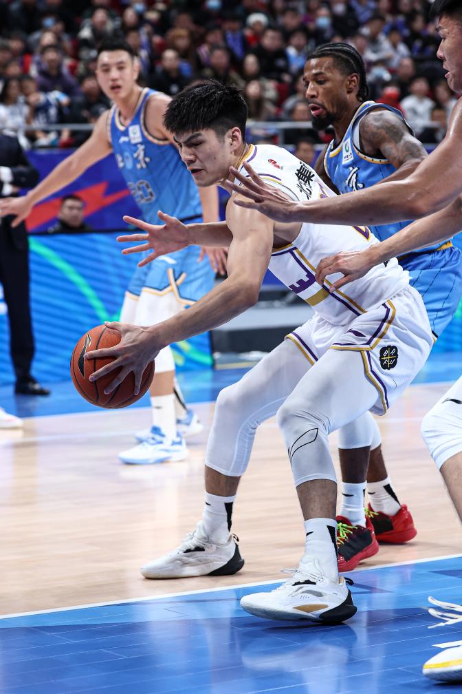 11月15日,北控队球员陈国豪(前左)在对阵北京队的比赛中。新华社记者 吴壮 摄