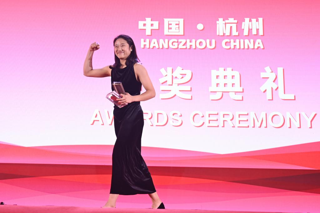 12月11日,获得年度最佳女运动员的韩国选手安洗莹在颁奖仪式上。新华社记者 黄宗治 摄