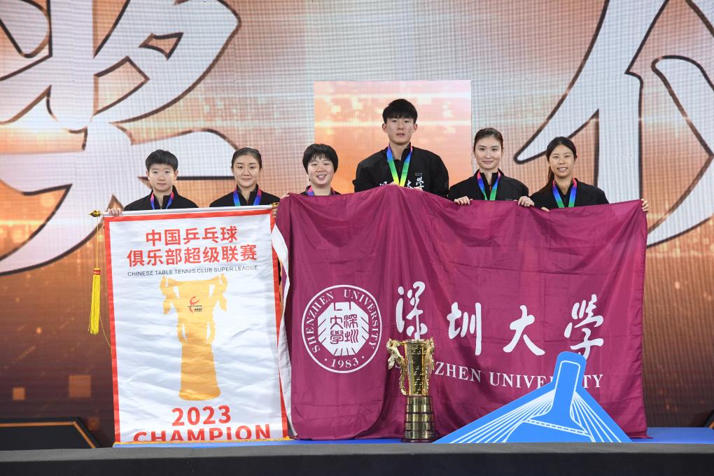 新华社深圳12月24日电(记者赵紫羽、王浩明、梁旭)2023赛季中国乒乓球俱乐部超级联赛总决赛24日在深圳决出冠军归属。马龙坐镇的山东鲁能队获得男团冠军,陈梦、孙颖莎领衔的深圳大学队获得女团冠军。