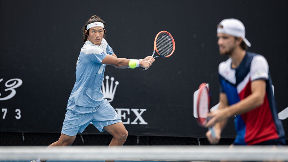 1月20日,张之臻(左)和马哈奇在比赛中。新华社发(胡泾辰摄)