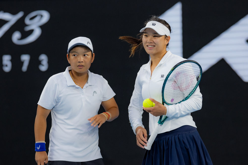 中国女双组合郭涵煜/蒋欣玗以6:4、1:6与3:6不敌赛会4号种子、跨国组合东布罗夫斯基/鲁特利夫,止步第三轮。