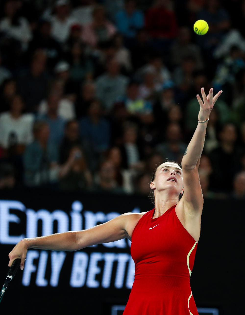 1月25日,萨巴伦卡在比赛中发球。新华社记者 马平 摄