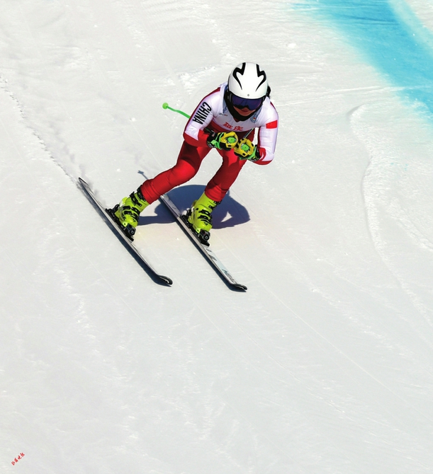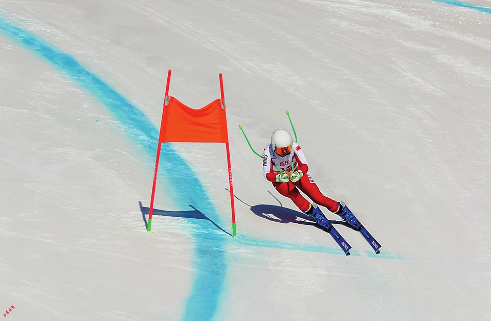 女子滑降比赛冠军朱天慧在比赛中。山西省体育局供图