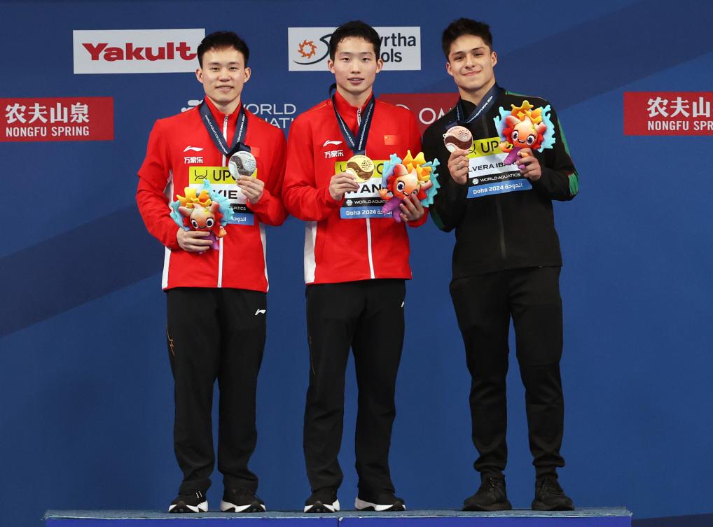 男单3米板较量中,伤愈复出的奥运冠军谢思埸在预赛和半决赛处于领跑态势,卫冕冠军王宗源在决赛发挥更加出色,6跳中有5跳拿到最高分,最终以538.70分摘金,实现世锦赛该项目“三连冠”。这也是王宗源职业生涯第8枚世锦赛金牌。谢思埸以516.10分摘得银牌,墨西哥选手奥尔韦拉-伊瓦拉获得铜牌。