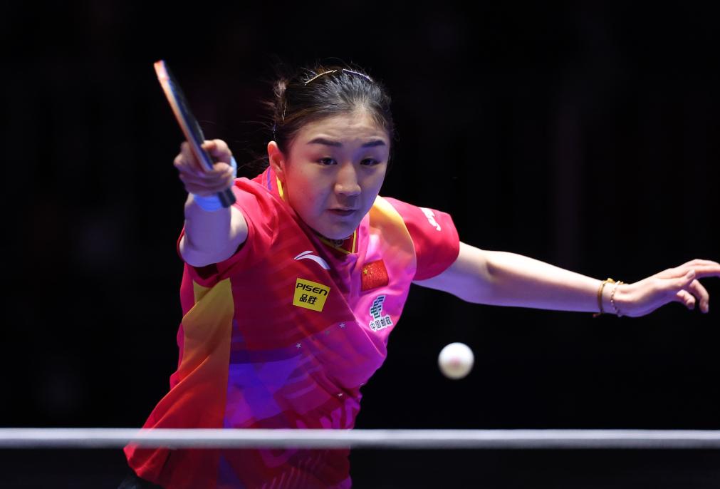 2月21日,中国队球员陈梦在第一盘比赛中回球。新华社记者 杨世尧 摄