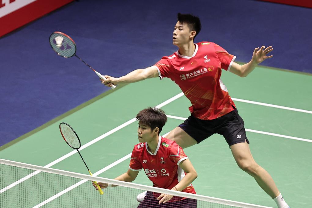 3月10日,冯彦哲(上)/黄东萍在比赛中。新华社发(奥雷利安·莫里萨尔摄)