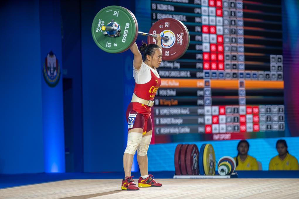 侯志慧以挺举120公斤和总成绩217公斤获得两枚银牌,抓举、挺举和总成绩均超过了她东京奥运会夺金时的成绩。蒋惠花则获得三项季军。
