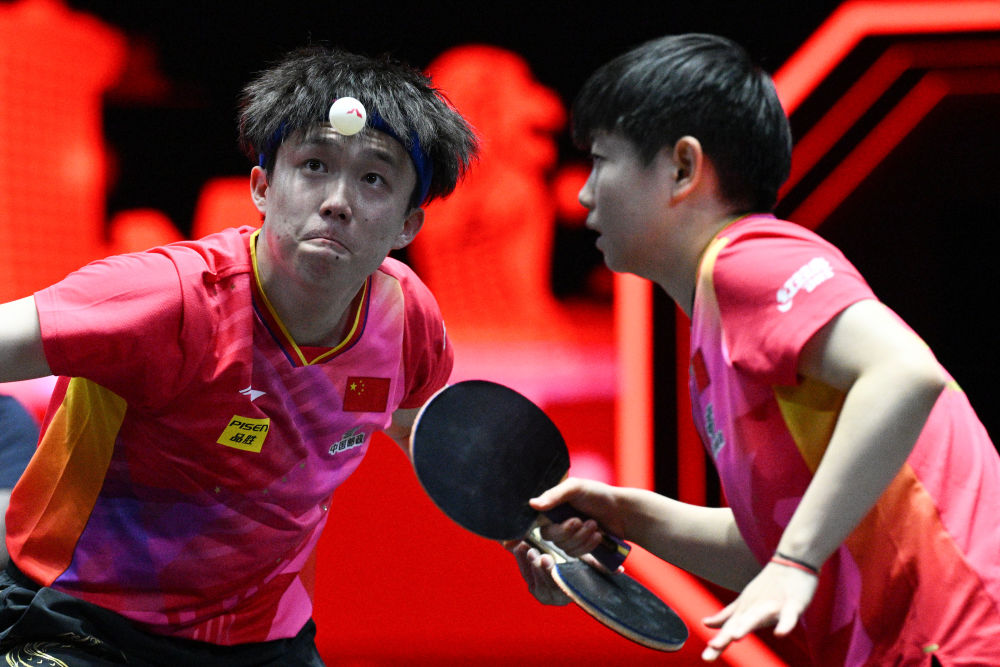 资料图:孙颖莎/王楚钦(左)在比赛中。新华社发(邓智炜摄)