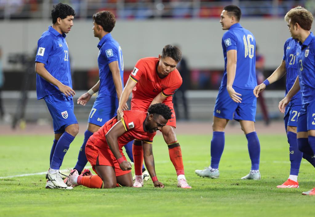 新华社沈阳6月6日电(记者张逸飞、公兵、肖世尧)比赛最后阶段潮水般的进攻没能弥补错失点球的遗憾,中国男足在6日进行的2026年美加墨世界杯亚洲区预选赛36强赛第五轮主场对阵泰国队的比赛中,凭借拜合拉木下半场的进球,以1:1战平对手。