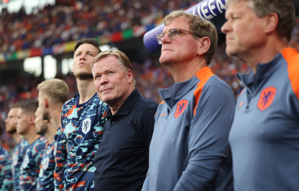 6月21日,荷兰队主教练罗纳德·科曼(中)在比赛前。当日,在德国莱比锡进行的2024欧洲足球锦标赛D组第二轮比赛中,法国队0比0战平荷兰队。新华社记者 白雪飞 摄