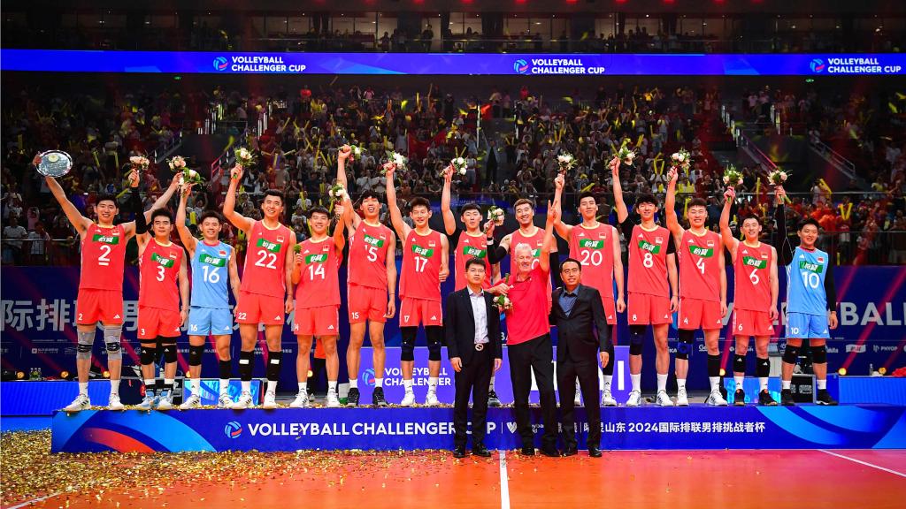 新华社济南7月7日电(记者张武岳)7日在山东临沂进行的2024年国际排联男排挑战者杯决赛中,中国队以3:1战胜比利时队,夺得冠军。
