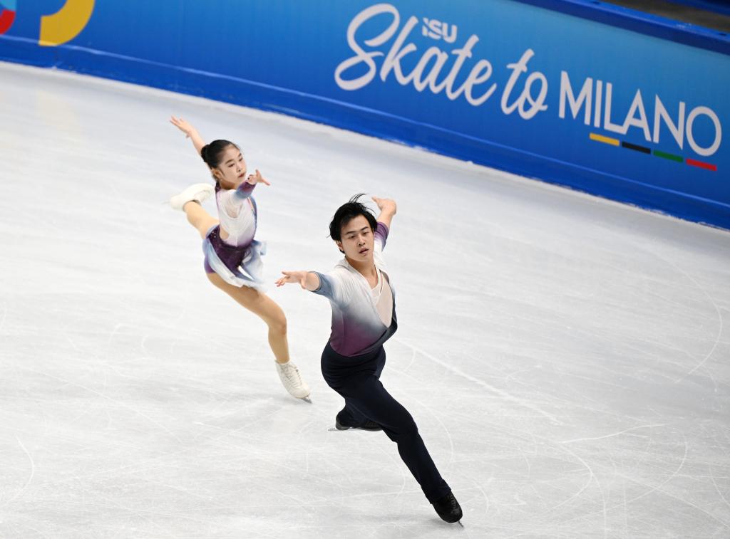 9月20日,张嘉轩/黄一航(右)在国际滑联花样滑冰奥运资格赛双人滑自由滑比赛中。新华社记者 张晨霖 摄