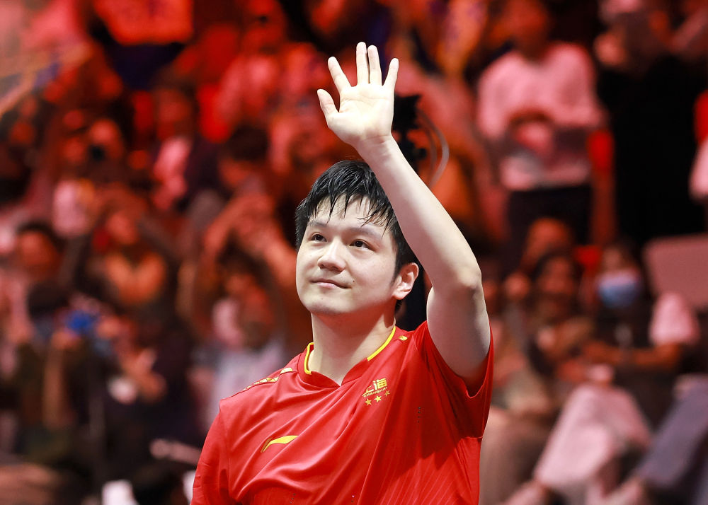 11月16日,上海队选手樊振东赛后向观众挥手致意。新华社记者 梁旭 摄