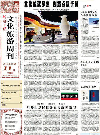 2015年9月9日到9月15日,以“文化三晋,美丽山西”为主题的第二届山西文化产业博览交易会在省煤炭交易中心隆重举行,忻州展区以独特大气的设计、精美典雅的展品吸引了众多嘉宾、客商前来观展、洽谈。本届文博会,我市共有20家文化企业的300余件文化产品参展,展览期间接待了20多万省内外观众。7天的展会,忻州文化产品经受了检验,也赢得了肯定。忻州展区饱囊了赞誉,也收获了成果。这是忻州文化产业的一次成功展示与推广,也是一次精彩的亮相,一次惊艳的外宣。承继优秀传统文化的精髓,不断创新发展,忻州文化产业之花,生根发芽,徐徐绽放。
