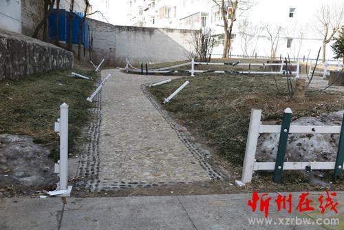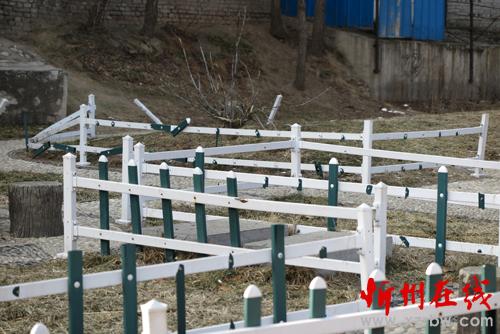 近年来,市委市政府从群众的实际出发,全面提升城市景观效果,建设了一批游园广场,为群众打造了一个美好宜居的家园,视野开阔的休闲场地、典雅别致的人文景观、绿意融融的花木草坪……然而,2月12日,记者在我市城区古城广场旁的一小游园内看到,游园内近一半的花栏墙被损坏,有的被连根拔起,有的仅剩几更铁桩东倒西歪的爬在哪里,看着让人心痛,采访中,市民刘先生对破坏公共设施这种行为表示极大的愤慨,他认为,广场游园里的这些花栏属于公共设施,被破坏成不像样子看着让人心疼,希望相关部门能严惩破坏分子,市民张大妈气愤地说,破坏花栏是不道德的行为,这里风景这么好,我们应该珍惜它,爱护它。市民马大爷说,对破坏公共设施的人公安执法部门必须给予严厉查处,让违法当事人付出沉重代价,不敢再随随便便搞破坏,对不爱护公共设施的人要加强教育,提高素质,自觉爱护公物,广场游园本是人民群众休闲娱乐的地方,这样遭到破坏,太缺德了。在此我们呼吁广大市民要增强爱绿、护绿、爱护公共财产的意识,共同创造一个美好的社会环境。(张志远 摄影报道)