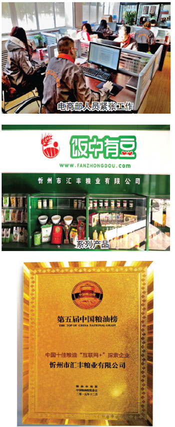2015年8月下旬,忻州市粮食局直属企业——忻州市汇丰粮业有限公司精心筹划的“饭中有豆”杂粮电子商务平台正式上线运营,一时间宛如一匹“黑马”迅速走红互联网,截至2016年1月23日,在五个月时间里营业额累计达100余万元,其中手机端访问量34114人次,被分享6423次,商品曝光被访问149907人次。2015年11月中旬,“饭中有豆”的淘宝店铺上线开张,在今年春节前夕1个月的时间里创下网络销售金额57万余元的业绩,完成了国有粮食企业由传统销售向互联网+创新发展的华丽转身。每天雪片似的订单和好评,彰显着网络云平台的传播魔力和忻州杂粮的营养魅力,也昭示着汇丰粮业依托互联网蓬勃发展的无限活力。