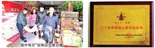 在采访中记者了解到,“饭中有豆”杂粮电子商务平台由面向全省招聘的网络技术专家和专业电商团队维护运作,平台开通了PC端、微信商城、淘宝店铺等多种网上入口,设置了平台首页、产地直供、精品馆、团购、今日特惠、健康饮食、供求信息、健康论坛等八大模块,发布了“五台山”牌特色小米、特色杂粮豆、石磨杂粮纯粉、杂粮面条、土特产、大米、小麦面粉、食用油八大系列100多个品种,并与百世汇通公司建立了物流配送战略合作伙伴关系。通过便捷的购物流程和贴心的物流派送,为用户提供一站式优质、安全、营养的杂粮食品及其它健康厨房食品,同时也为本地中小企业提供产品展示、品牌宣传和销售服务。在线下,“饭中有豆”杂粮电商平台按照市场区域布局设立体验店,通过PC端、移动客户端实时在线,借助二维码扫描、微信互动、GPS位置定位等互联网工具,实现了线上线下相互融合。目前,在线下已建成忻府区、保德、代县3个区域的体验店,并与太原市谷革连锁企业、汇德源社区生活馆建立了深度合作关系。“饭中有豆”杂粮电商平台在上线五个多月的时间里网络销售业绩不俗,小杂粮系列产品供不应求,好评如潮。