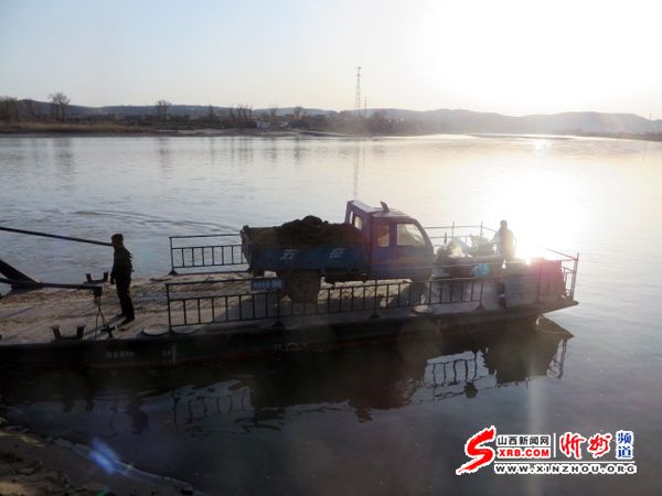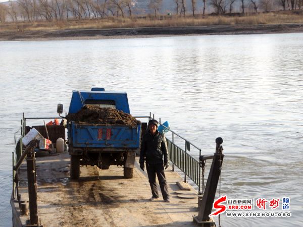 山西新闻网忻州讯 3月26日,陕西省府谷县墙头乡一农民从河曲买了一车农家肥,用船载车拉回。