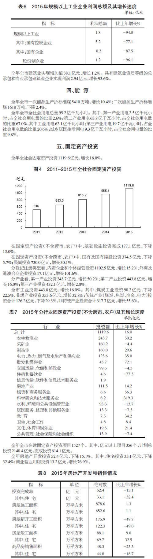 忻州市2015年国民经济和社会发展统计公报