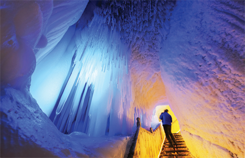 有专家称万年冰洞是除世界极地冰盖和永久冻土层地区以外发现的罕见大冰洞,尽管许多科学家都曾实地探寻过它的形成原因,然而这个谜团至今仍未解开。(曹建国 王权 摄)