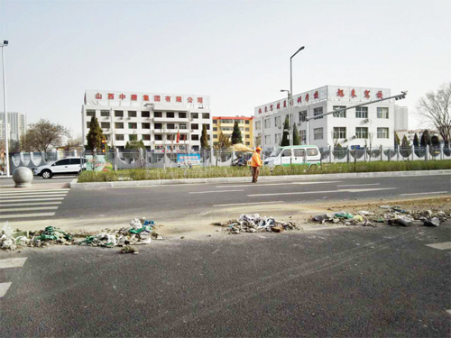4月1日,在我市开发区九源街与新建路十字路口,路面上因被抛洒了大量建筑垃圾而污染,给过往的车辆带来安全隐患。