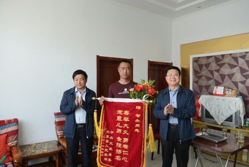 中国网(山西)讯 4月14日下午,定襄县委书记张文斌、县长刘亮、县委副书记王殿君、县人大主任张德星、县政协主席兰继升、县委宣传部部长曲建成、晋昌镇党委书记赵泽青等领导一行慰问了在南京救了70多名乘客的定襄80后小伙智杰,并为他送去了10000元奖金和锦旗。