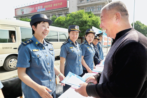 宣传月活动期间,忻州公路分局共出动宣传人员3360 余人次,出动宣传车124 辆次,在所辖各公路超限检测站、路政大队、服务大厅、国省干线公路沿线悬挂布幅标语140 幅,发放各类宣传资料160000余份。各路政大队、检测站每天播放《山西省公路条例》、《公路安全保护条例》的录音宣传资料,并在当地电视台飞播宣传口号。据了解,忻州公路分局下一步将在忻州路政服务大厅展开更有针对性的宣传活动,进一步增强广大人民群众爱路护桥的意识,有效预防超限运输违法行为发生,为创造良好的路政执法环境提供有效保证。图为活动现场(王菲)