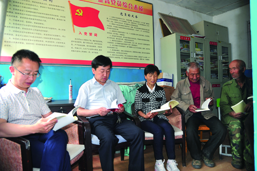 刘桂珍与乡领导一块组织党员开展“两学一做”学习教育工作
