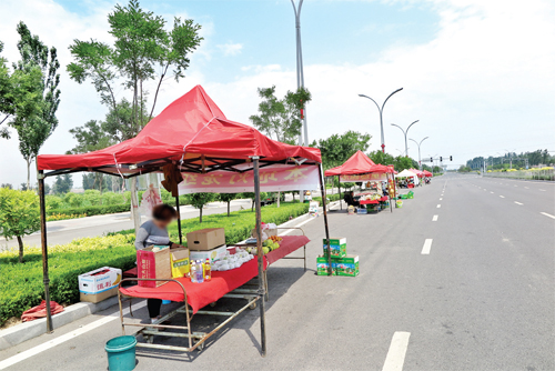 希望有关部门,加强对瓜农交通安全教育,并采取有效措施,及时制止他们在马路摆摊叫卖行为。同时,希望广大司机不要随意停车,以免影响交通安全。图为摆在旭来街上的香瓜摊点。(张志远 摄)