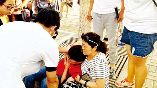 在等待救护车到来的时候,一位路过的老人递过几粒随身携带的速效救心丸,刘增芬马上将药往男青年嘴里喂,却怎么也喂不进去。这时,吕卓蔚也从药店买来了速效救心药品,刘增芬劝男青年张开嘴吃药:“孩子,这是救命药,快张开嘴啊。”异常痛苦的男青年在吃几次、掉几次之后,终于含服了几粒药。
