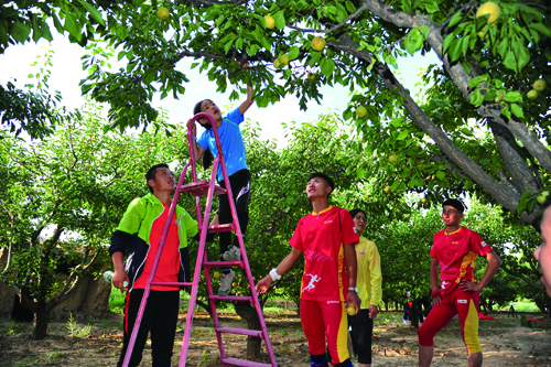 运动健儿杏园采摘白水杏