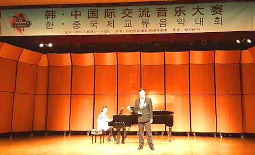 首届“韩·中国际交流音乐大赛”是由中韩共同主办的高标准国际音乐赛事,大赛为所有怀揣艺术才华及梦想的选手提供展示自我、相互交流的全新综合性国际平台。从今年5月份开始,即在北京、天津、上海、浙江、湖北、江苏、江西、四川、河北、山西、甘肃等省市展开了初赛角逐,甄选出200名选手。7月赴韩参加总决赛,决赛由韩国釜山音乐协会主办,评委由釜山大学、东亚大学、庆星大学、釜山女子大学(现新罗大学)、高神大学、东义大学、釜山教育大学等知名音乐院校教授担任。