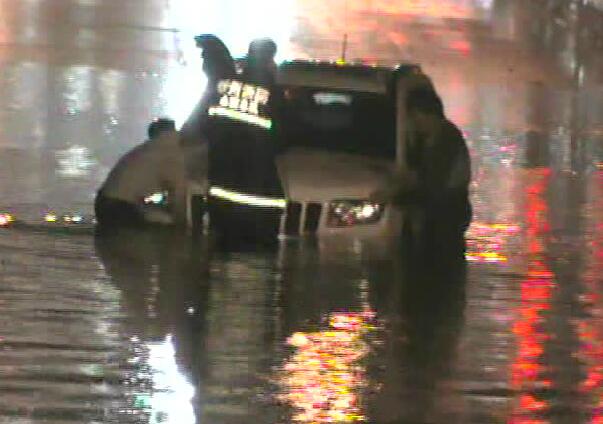 7时59分,同一地点,又1辆小轿车驶入水中无法自救,忻州支队杨屹茂支队长闻讯立即亲自带队赶到。到达现场后,杨屹茂支队长立即指示忻府区中队成立侦查小组,对现场情况进行侦查。根据侦查小组的反馈得知,被困车辆淹埋水位线为60公分左右,车内有一名人员被困。当时正值暴雨天气,水位线上涨,不断威胁车内被困人员的生命财产安全。随后,杨屹茂支队长迅速组织全体官兵,从被困车辆两侧和车头,将被困车辆推出。