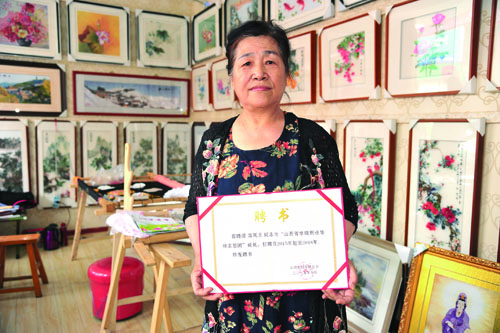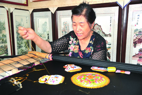 高凤兰正在制作高锦绣作品