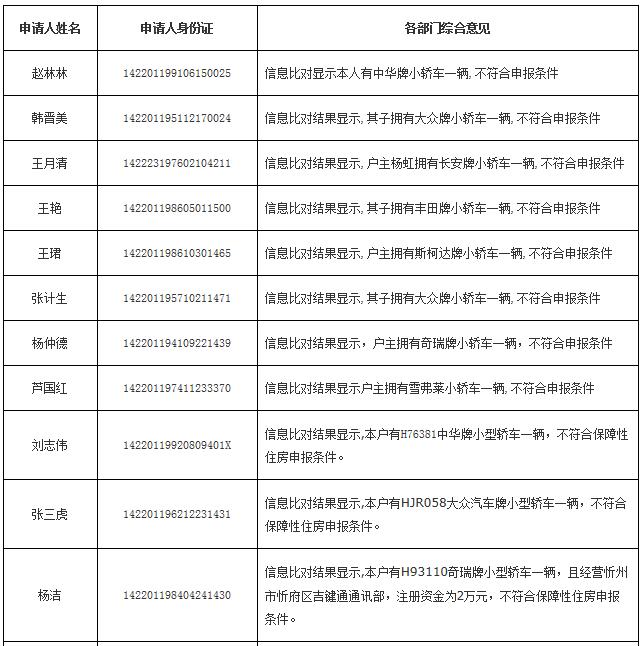 按市政府安排,经房管、民政等部门复核,第一批有483户2014年申报公(廉)租房保障家庭不符合保障条件,具体名单如下表。