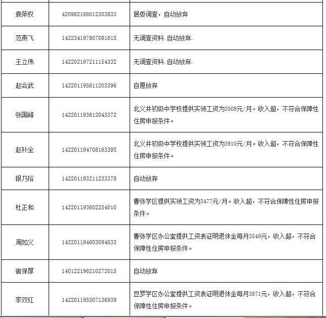 2014年申报公(廉)租房不符合保障条件花名表
