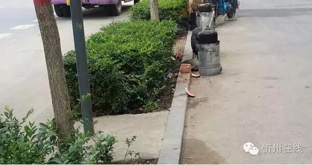 火车站公交站牌处的西瓜皮