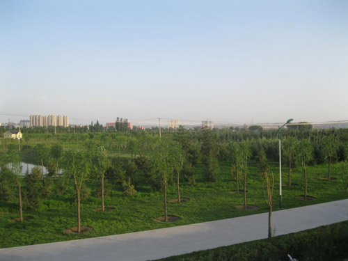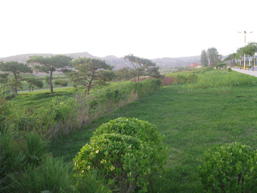 截止目前,项目基本竣工,种植侧柏、桧柏、油松、云杉等常绿树种2730株,乔木及花灌木6882株,草坪7.7万平方米,新增绿地面积300亩。该工程的建成有效地促进了城市化建设,改善了生态环境,保护了母亲河,同时为广大市民休闲增添了一个好去处。