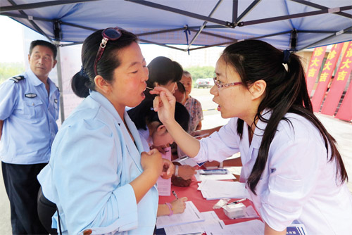 据了解,我市“幸福启航·口腔健康公益行”活动由忻州美源口腔医院负责执行实施。该医院是山西红十字口腔医院在我市开设的第一所分支机构,依托450名专业口腔医护团队,配备国际顶尖的牙科诊疗设备,让忻州市民享受到国际水准的口腔医疗体验。据悉,忻州美源口腔医院将成立专家组深入社区为广大市民开展免费口腔检查,为牙列不齐、缺失牙的贫困家庭妇女儿童,提供每例最高5000元的医疗资助服务。该院负责人表示,希望通过本次活动能够传播正确的口腔健康观念,教授口腔健康保健知识,让我市更多的市民有一口好牙。图为口腔专家现场为市民检查口腔(张志远 王菲)
