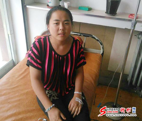 图为石松梅因阑尾炎复发在诊所打点滴