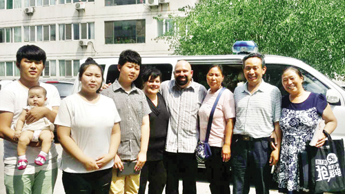 8月1日,中美两个家庭的部分成员在山西省民政厅前合