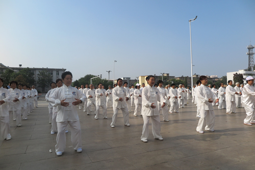 为了进一步弘扬太极文化,促进全民健身,追求拳无止境,自强不息的境界,达到促进交流、相互提高的目的,大力推进我市太极拳发展,8月10日上午,由国家体育总局健身气功管理中心、山西省体育总会主办,忻州市体育局、忻州市体育总会杨氏太极拳分会协办的2016年全国百城健身气功交流展示系列活动暨忻州市第二届传统杨氏太极拳比赛在我市城区日月广场开赛。来自原平、宁武、忻府区等8支代表队300余人参加比赛。