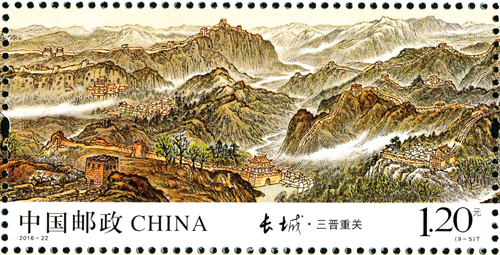 中国万里长城是世界上修建时间最长、工程量最大的冷兵器战争时代的国家军事性防御工程,是中华民族的古建瑰宝,凝聚着我们祖先的血汗和智慧,是中华民族的象征和骄傲。长城有极高的旅游观光价值和历史文化意义,是中华民族古老文化的丰碑和智慧结晶,象征着中华民族的血脉相承和民族精神。1961年,长城被列为国家级重点文物保护单位,1987年,被列为世界文化遗产,2002年,被列为世界新七大奇迹。1984年,邓小平、习仲勋作出“爱我中华,修我长城”的题词,2006年,国务院颁布了《长城保护条例》。2015年,习近平总书记、李克强总理对长城保护工作作出了重要批示。今年,为纪念《长城保护条例》颁布10周年,中国邮政专门发行了《长城》特种邮票,一套九枚,分别为:关山沧海、蓟辽天堑、燕赵雄风、京畿屏障、三晋重关、长河飞龙、高原北望、大漠关城、丝路古道,总面值13.2元。全套9枚邮票中,山西有两枚长城邮票。第5枚“三晋重关”、第6枚“长河飞龙”展现了山西十几处长城景点,成为全国境内长城入选最多的省份。长城景点浓缩方寸邮票之中,姿态万千,各具特色。邮票色彩丰富,设计精美,充分体现出了长城的雄伟壮观。