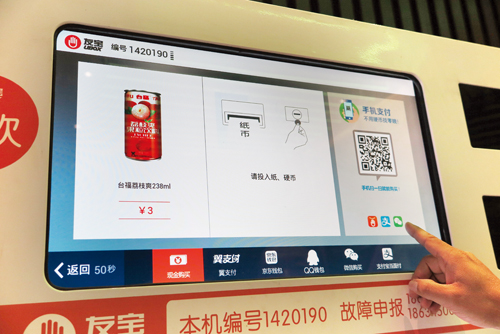 智能售货机利用互联网实现智慧购物与智慧营销的合二为一,现在网络化和指尖化的趋势越来越强,人们出门即使忘带钱包,也不会忘带手机,而且只要带上手机,便拥有了钱包的功能。在智能售货机中,消费者可以通过手机在线支付的方式轻松购物,而经营者也可以通过手机轻松经营。“你看,这里显示8月23日上午10点21分在和平街开莱欣悦购物广场编号为1420190的机子通过在线支付的方式售出一瓶脉动饮料。”李彤彤指着她的手机界面向记者解释。原来,公司负责人、运营人员以及补货人员的手机都与智能售货机进行了绑定,在他们的手机上,可以显示每台智能售货机的实时情况,比如哪台售货机的哪种商品卖完了需要补货,哪台售货机出现了网络故障等等,相关人员看到后便可立刻赶往解决问题。通过这种网络化的运营和销售,友宝智能售货忻州运营中心不需要额外租赁办公场所、也不需要过多的管理人员,可以最大限度节约成本,而且这也使整个销售过程完全透明化,有利于人员之间的管理。