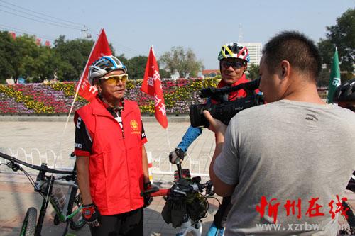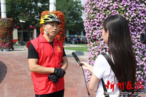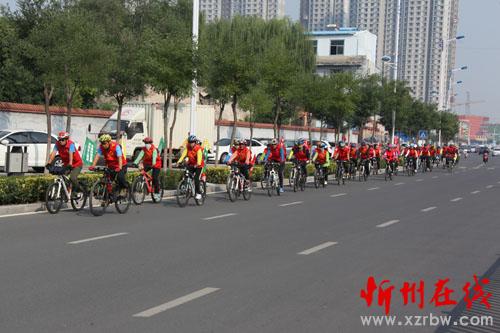 身穿红马甲,车栽七彩旗;义务骑行队,全力助“创卫”。为了全方位宣传“创卫”,全面推进“创卫”工作,让环境保护深入人心,9月14日,一支由忻州市环保局和忻州市环保志愿者协会联合组建的环保卫士自行车骑行队亮相忻州街头,40多人统一着装,统一队列,统一骑行速度,吸引了街头惊羡的目光。