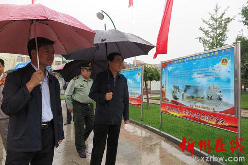 参会有关领导和人员还冒雨观看了以“牢记历史、勿忘国耻”为主题的人防知识图片展览,向过往群众发放了人防法律法规宣传资料。(鲁明强 高君)
